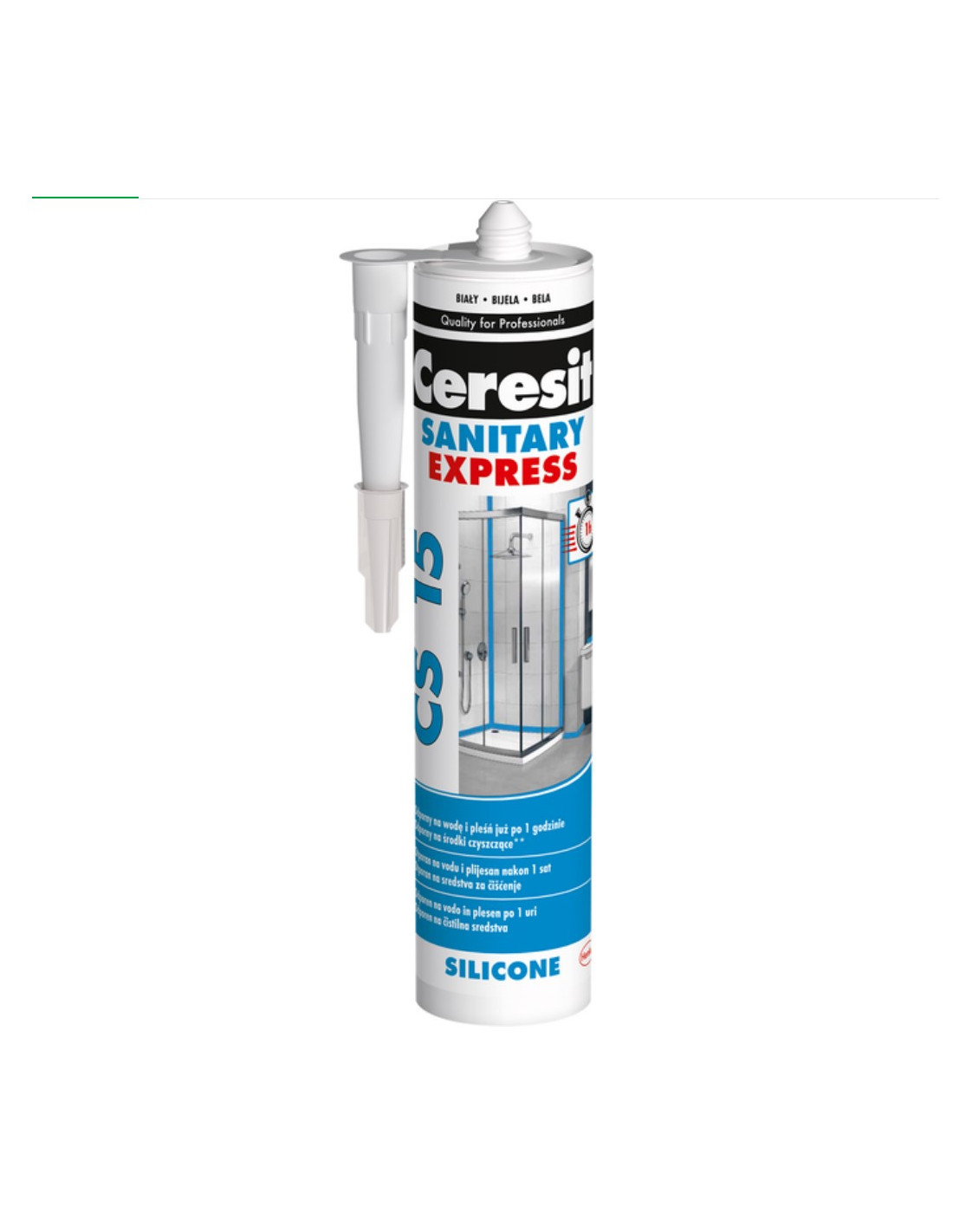 Ceresit CS 15 Express призначений для швидкого заповнення стиків між керамічною плиткою в кутах стін і в місцях з'єднання стін із підлогою, для заповнення люзів між плиткою й сантехнікою. Завдяки тривалій еластичності та водостійкості підходить для герметизації деформаційних швів у вологих приміщеннях. Рекомендується для використання у ванних кімнатах, кухнях, туалетах, душових кабінах.
