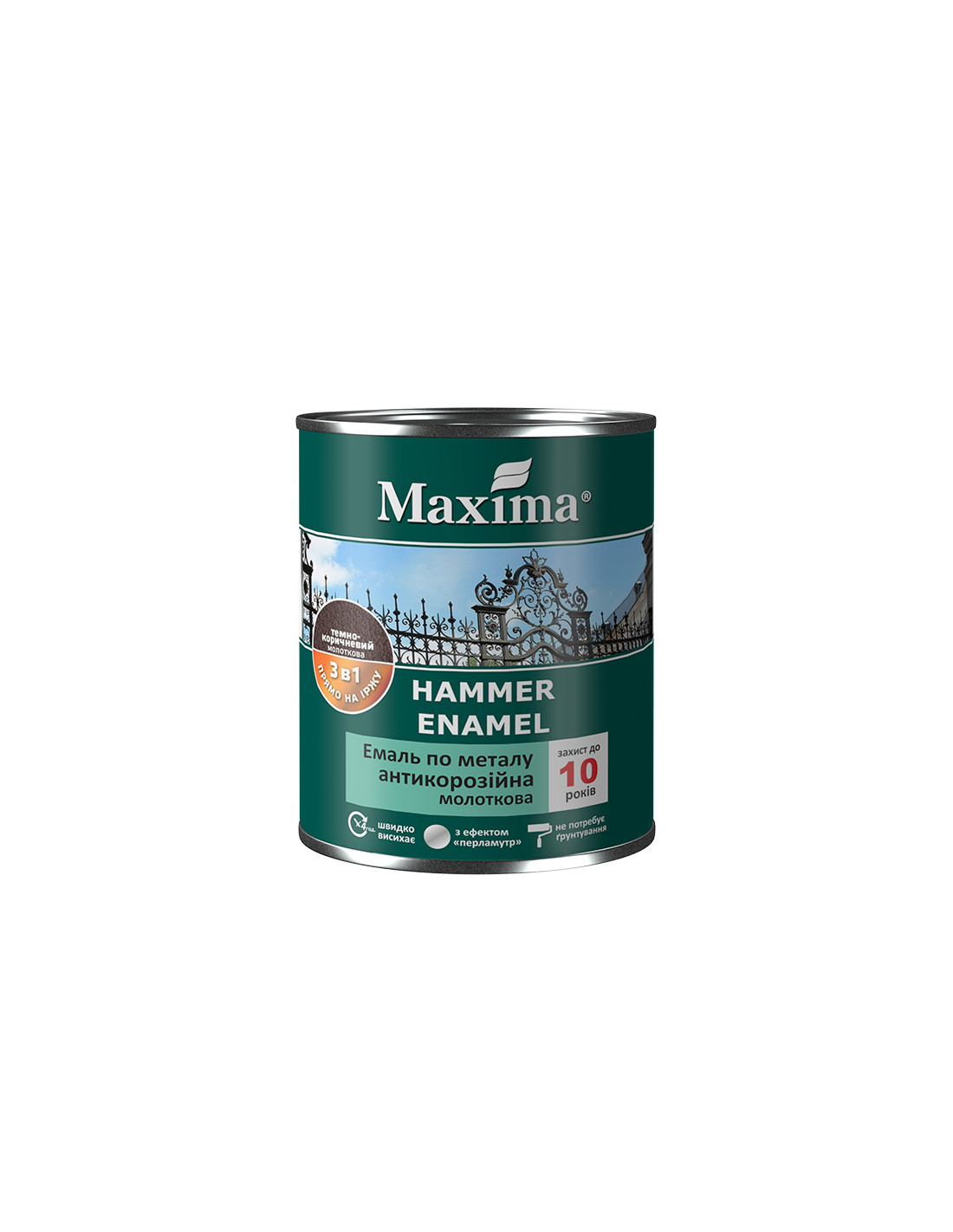 Являє собою емаль по металу 3в1, яка функціонально об'єднує в собі: адгезійну ґрунтовку, захист від корозії та фінішну емаль. Утворює на поверхні антикорозійну плівку з перламутровим молотковим ефектом, що захищає поверхню металу від впливу вологи і повітря, утворення іржі. Не вимагає попереднього застосування спеціальних матеріалів для видалення іржі та грунтування. Утворює покриття, яке маскує дрібні дефекти поверхні, стійке до впливу води, атмосферних впливів, УФ-променів, індустріальних масел, побутових миючих засобів. Швидко висихає, завдяки цьому кілька шарів емалі можна нанести протягом одного дня. Емаль має високу адгезію (зчепленням) до основи.
