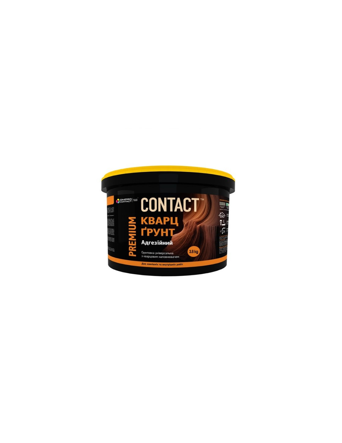 Кварц-грунт ТМ «CONTACT» - це універсальний матеріал, який дозволяє отримати поверхню з високими адгезивними властивостями. При цьому може використовуватися як самостійне покриття із структурним візерунком. Має високу адгезію до різних типів мінеральних поверхонь. Основна функція продукту полягає у наданні адгезійних властивостей поверхонь та подальшому нанесенні як декоративних штукатурок, кахельної плитки або інших матеріалів. Призначення: Кварц-грунт призначений для попередньої обробки, зміцнення та збільшення адгезивних властивостей поверхонь перед нанесенням декоративних штукатурок, керамічної плитки тощо. Використовується для ґрунтування нових або реставрації старих мінеральних поверхонь зовні та всередині приміщень. Наноситься на штукатурку, шпаклівку, бетон, гіпсокартон, цеглу та інші поверхні. Не вбирає в себе вологу, але при цьому має паропроникні властивості. Можна використовувати як самостійне покриття при нанесенні щонайменше у два шари Кольори та кольорування: кварц-грунт має білий колір. Тонується пасту кольору в пастельні відтінки. Максимальна кількість доданої колерувальної пасти не повинна перевищувати 5% від маси кварц-ґрунту. Склад: полімерне сполучне, мінеральні наповнювачі, функціональні добавки, двоокис титану, вода. Гранично допустима концентрація летких органічних сполук (ЛОС) для матеріалів категорії А/h відповідно до директиви 2004/42/ЄС та ВР становить 30 г/л. Цей продукт містить менше 30 г/л ЛОС. Підготовка поверхні: Нова поверхня: підготовка поверхні здійснюється згідно з ДБН В.2.6-22-2001 та ДСТУ-Н Б А.3.1 — 23:2013. Поверхня має бути чистою, сухою та міцною. Попередньо відштукатурені або відшпакльовані стартовою шпаклівкою поверхні повинні бути сухими. Високопоглинаючі поверхні (такі як газобетон, гіпсова штукатурка та інші) слід попередньо обробити ґрунтовкою глибокого проникнення ТМ «CONTACT». Раніше пофарбована поверхня: Підготовка поверхні здійснюється згідно з ДБН В.2.6-22-2001 та ДСТУ-Н Б А.3.1 - 23:2013. Поверхня має бути чистою, сухою та міцною. Відшарування, забруднення, висоли, старі покриття необхідно ретельно видалити. Поверхні, покриті алкідними чи олійними фарбами, зачистити наждачним папером. Крихкі поверхні обробити ґрунтовкою глибокого проникнення ТМ «CONTACT». Уражені грибками поверхні очистити та обробити антисептиком ТМ «CONTACT», згідно з інструкцією. Перед використанням кварц-грунт необхідно перемішати. При проведенні робіт температура середовища не повинна бути нижчою за +5°С. Для рівномірного формування поверхні - при нанесенні уникати потрапляння прямих сонячних променів. Після затвердіння поверхня на яку нанесено кварц-грунт стає стійкою до подряпин металевим шпателем, що свідчить про її висихання та можливість подальшого нанесення інших матеріалів. Витрата кварц-ґрунту становить 200-500 г/м2 залежно від способу нанесення. Методи нанесення: валиком із коротким ворсом чи щіткою. При необхідності створення декоративного покриття – використовувати фактурний валик для створення різноманітних декоративних візерунків. Також фарборозпилювачем типу WAGNER, при цьому слід враховувати збільшення витрати матеріалу. Час висихання: час висихання одного шару кварц-ґрунту до відлипу (ступінь 3) 2-4 години. Міжшарове сушіння – 4-6 годин. Повне затвердіння та здатність сприймати навантаження – 24 години. 