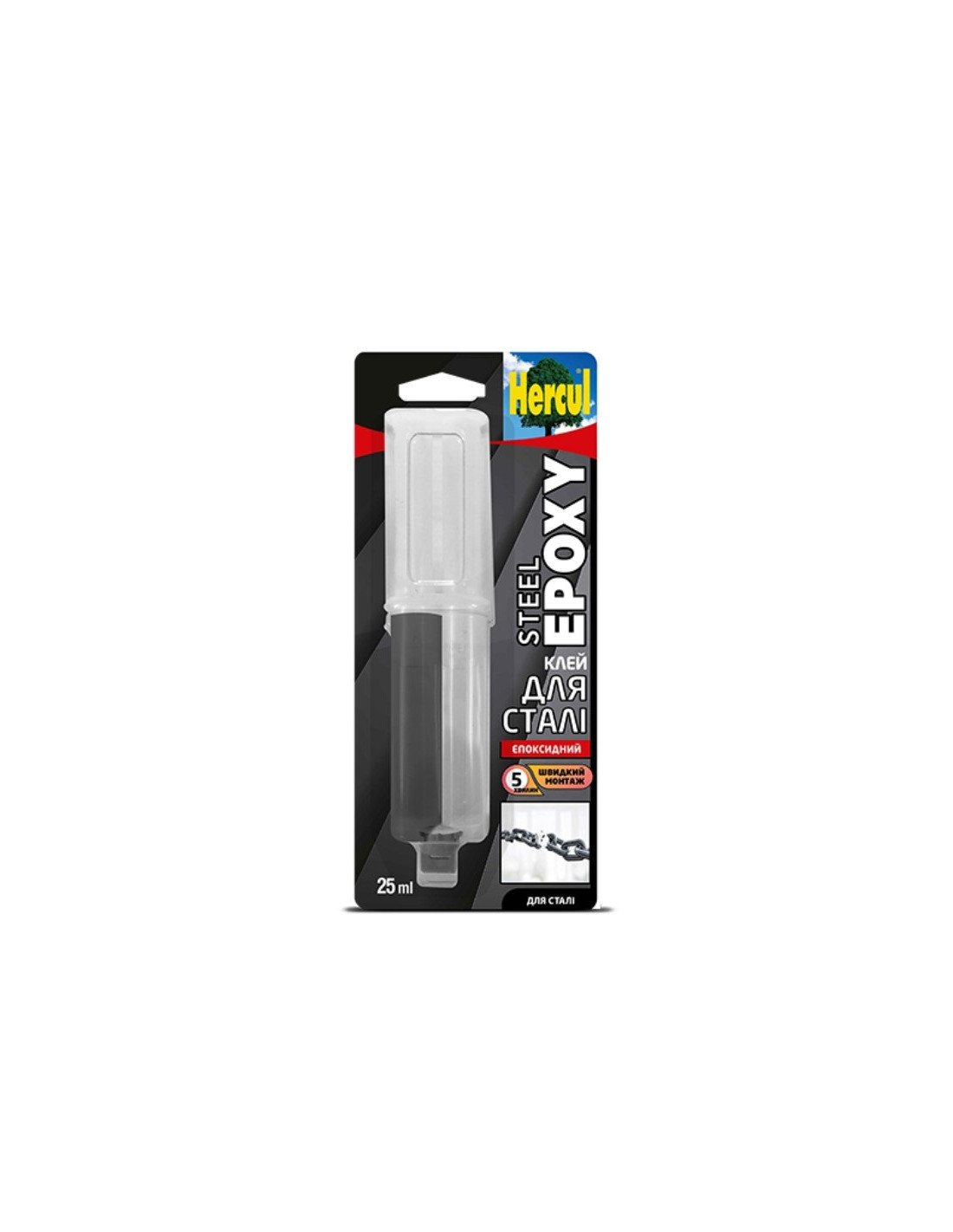 HERCUL STEEL EPOXY Епоксидний клей для сталі в шприці