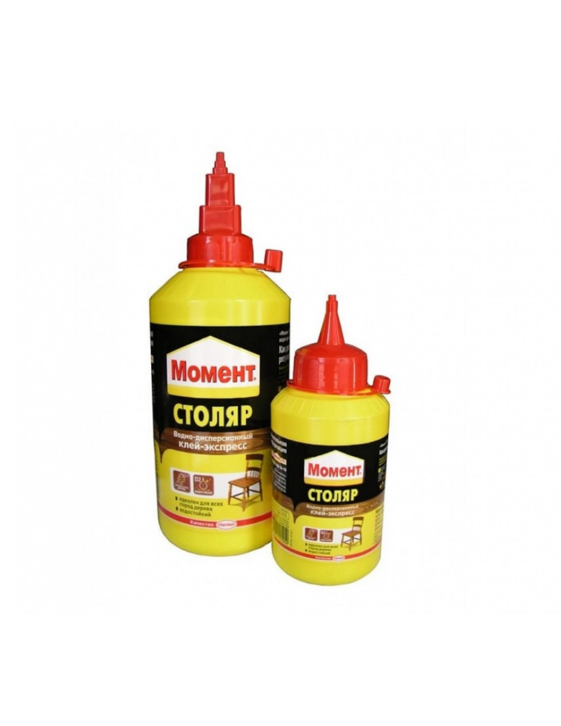 Універсальний клей Момент Столяр ПВА Експрес на основі водної дисперсії для всіх порід дерева. Застосовується для монтажного склеювання всіх порід дерева, ДСП, ДВП, МДФ, багатошарової фанери, приклеювання декоративного паперово-шаруватого пластику та шпону.