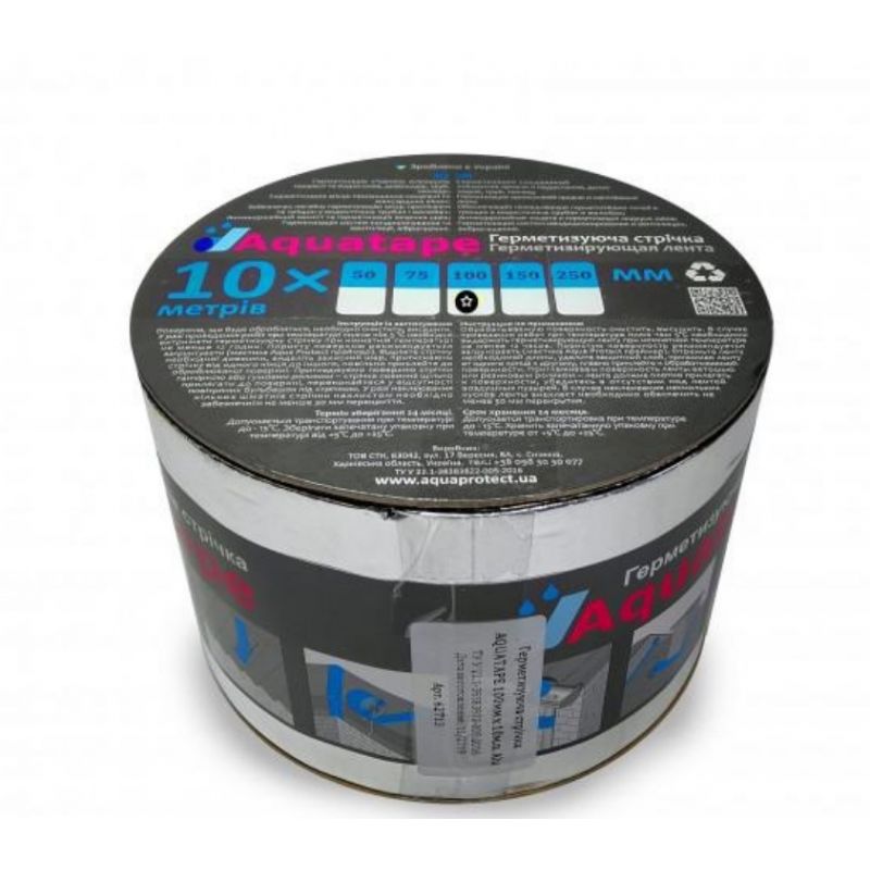 Герметизуюча бутилкаучукова стрічка самоклеюча, армована алюмінієвою фольгою з полімерним покриттям. Високоефективна при ремонті протікання в покрівлі, всіляких примикань і стиках елементів покрівлі. Оброблювану поверхню очистити, висушити. У разі проведення робіт при температурі не нижче ніж 5°С необхідно витримати герметизуючу стрічку при кімнатній температурі не менше 12 годин. Пористу поверхню рекомендується загрунтувати (мастика Aqua Protect праймер).