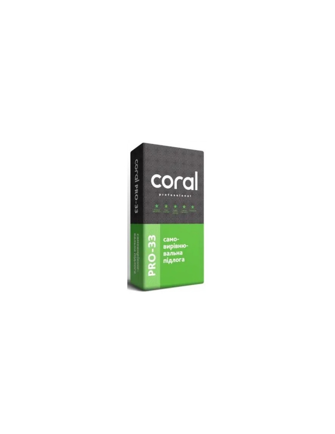 Cамовирівнювальна високоміцна суміш цементна Coral Pro-33 призначена для фінішної заливки та вирівнювання бетонних підлог під фінішні покриття (керамічна плитка, природний камінь, лінолеум, ковролін, ламінат, паркет та інші. Рекомендована товщина шару від 3 до 15 мм. Може застосовуватися як основний шар під систему «тепла підлога». Рекомендується використовувати в місцях з підвищенним навантаженням та в якості фінішного покриття в заводських та складських приміщеннях.