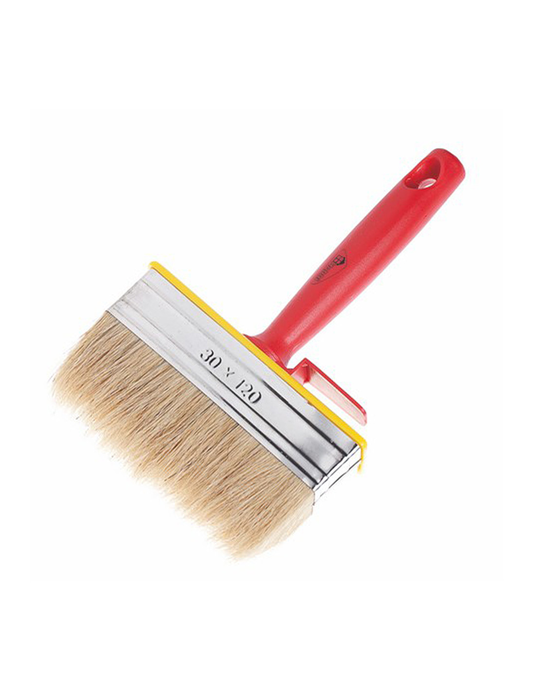 Натуральная щетина. Пластиковое основание, металлический бандаж, пластмассовая ручка. Применение: очистка и размывка поверхностей, нанесение побелки, грунтовочных и клеевых составов, любых видов лакокрасочной продукции.