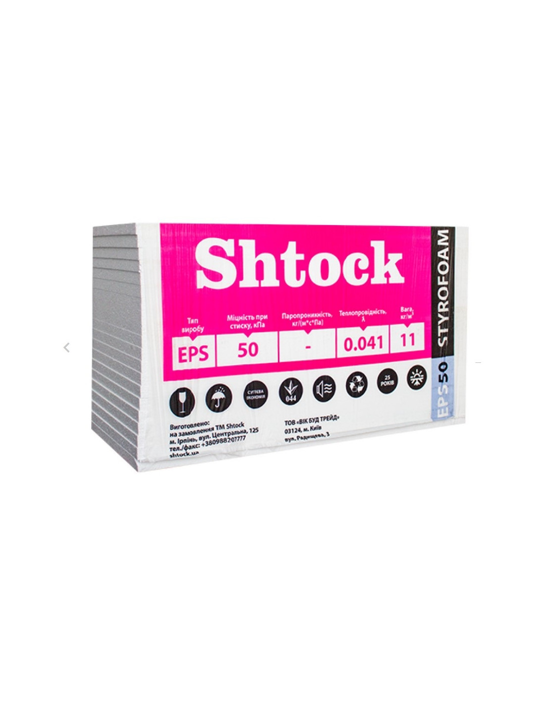 Теплопровідність в сухому стані при температурі 25(±5) oС: 0,041 Вт/(м.· К.)
