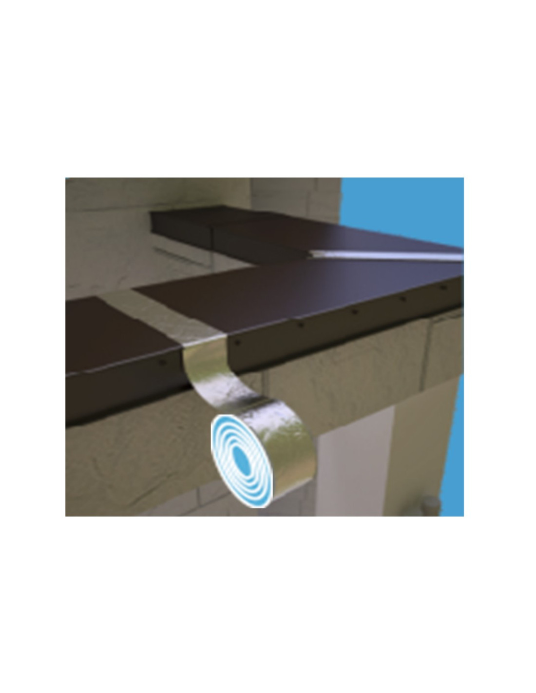Самоклеюча стрічка AQUATAPE шириною 75 мм і товщиною 3 мм - це герметизуюча бутилкаучукова стрічка, армована алюмінієвою фольгою і прокрита полімерним шаром коричневого кольору.